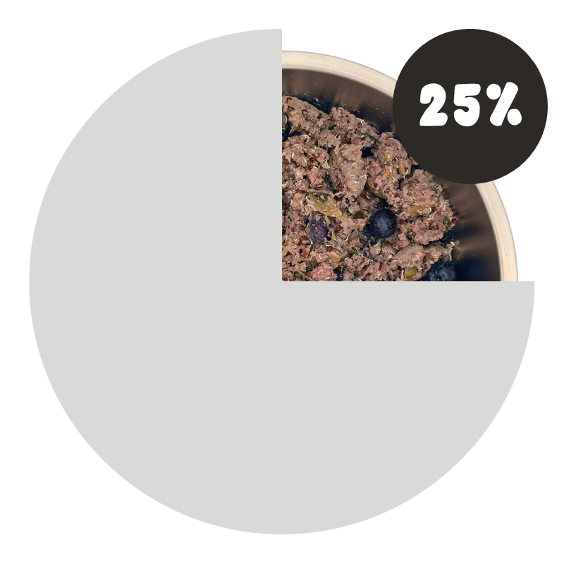 • 75% old food, 25% California Dog Kitchen food.