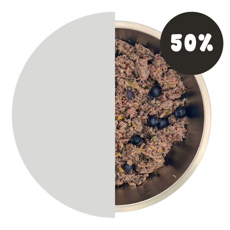 • 50% old food, 50% California Dog Kitchen food.